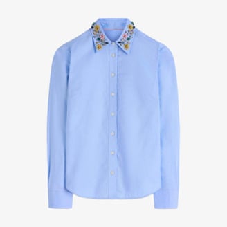This sounds niche, but hear me out. Years ago – a decade at least – I bought a classic blue cotton button-down shirt from J Crew, with rhinestone beads embroidered on the collar. One of those purchases that feels whimsical but turns out to be an unexpected wardrobe staple. I still wear it all the time, because it hits a sweet spot of being special without being fussy, and it layers brilliantly under crew-neck sweaters or knit vests. I spotted this Boden version at their recent press day: it’s great.