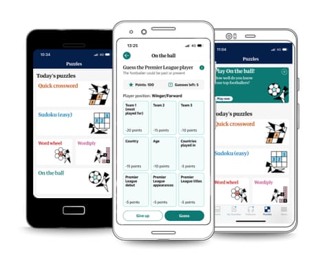 Half-time advertisement. The Guardian has kicked off a new chapter in puzzles with the launch of its first daily football game, On the ball. It is now live in the app for both iOS and Android … so what are you waiting for?