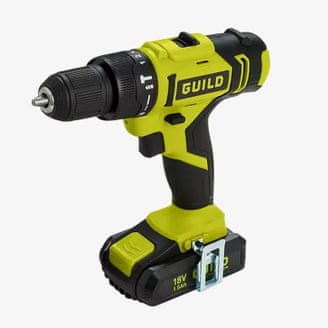 I’ve had mixed experiences with budget brand Guild, but this cordless combi drill kit proved impressive. It’s comfortable to hold, the controls work smoothly, and it performs a decent range of drilling tasks (albeit not as swiftly as some of the swankier models I tested). The selection of drill bits included is focused on wood drilling and screw-driving tasks, and – perhaps not coincidentally – these are the drill’s strengths.