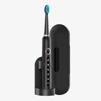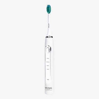 While many toothbrushes (including this one) have a built-in whitening setting that adds time or alternates speeds to remove surface stains, the Whites Beaconsfield sonic LED toothbrush – with its terrifying picture of a toothy strawberry on the box – goes the extra mile by including blue light whitening technology. The company says this can whiten teeth by an average of 2.5 shades in three days.