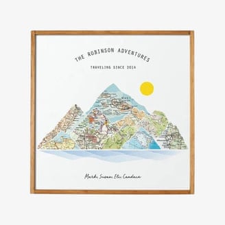 There’s something inherently sweet about a keepsake piece of art that honors your shared adventures – and lives off your Instagram grid. “She’s super creative, so she drew a book of all the places we’ve been and all the places we’ll go, like two stick figures in front of the Eiffel Tower,” says Oli Wiesel, a chief strategy officer. For a show-stopping piece of art, commission artists John and Rachel Stewart to immortalize your travels on a piece of map art featuring up to 15 locations set atop a mountainous landscape.