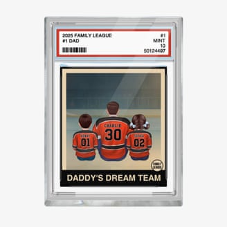 Jacqueline Hopmeyer, a marketing director, gifted her husband this custom trading card as “a super cute Father’s Day present that could double as a holiday gift”. You can customize the sport, number of children, hair color, jersey and more. It’s set in transparent acrylic that stands upright on its own, ready to display proudly on his shelf. “He was so moved by this,” she says.