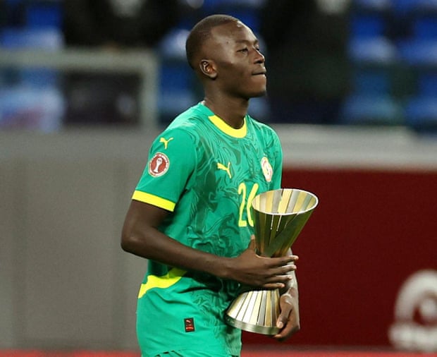 Senegal were behind after six minutes of their last-16 clash at the Grande Stade de Tanger but Gueye (pictured with his man-of-the-match trophy) scored two goals before half-time and the 17-year-old Ibrahima Mbaye added a third 13 minutes from the end. Senegal, the 2021 Cup of Nations winners, are the second-ranked team in Africa and, despite conceding early, showed their quality and strength to win in comfortable fashion.